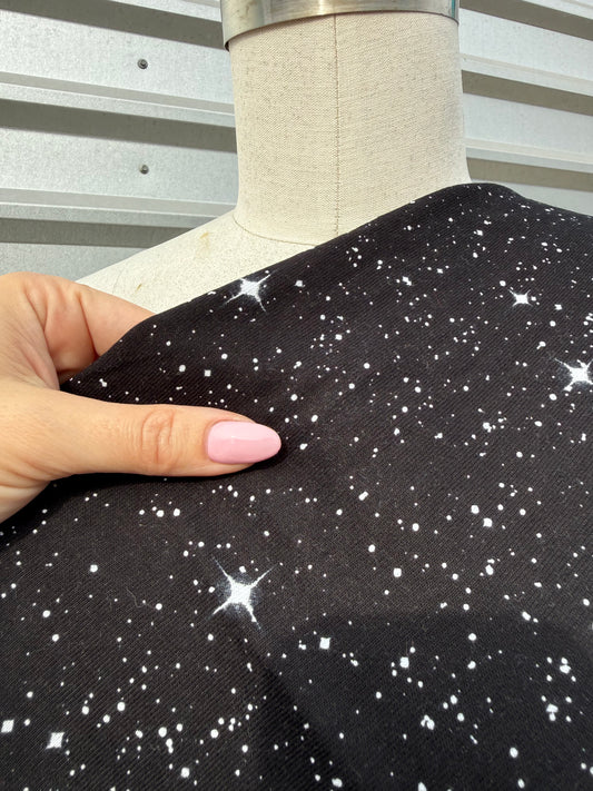 Black White Star Space Print Cotton Jersey Knit "In The Stars"