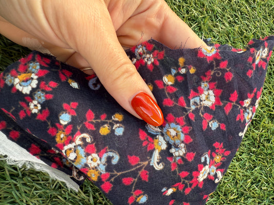 Navy Blue Red Yellow White Baby Blue Floral Vine Cotton Voile Woven "Fair Oaks Farm"