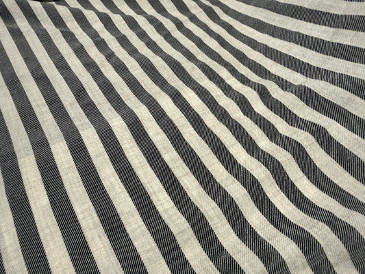 Charcoal Cream Vertical Stripe Rayon Polyester Gaberdine Woven ‘Smoked’