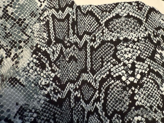 Black White Gray Abstract Snake Animal Print Polyester Crepe "Snakeskin Impressions"
