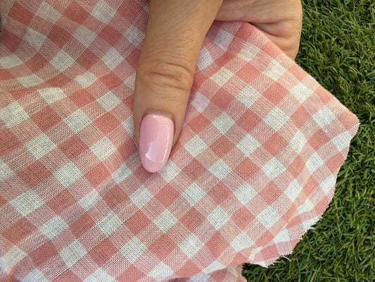 White Pink Gingham Plaid Cotton Voile Woven "Pinky Promise"