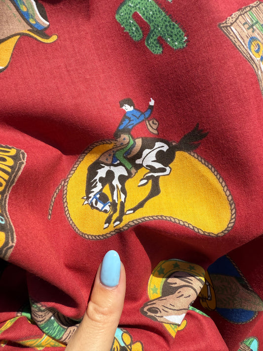Vintage Red Cowboy Rodeo Cotton Poplin "Lucky Red"