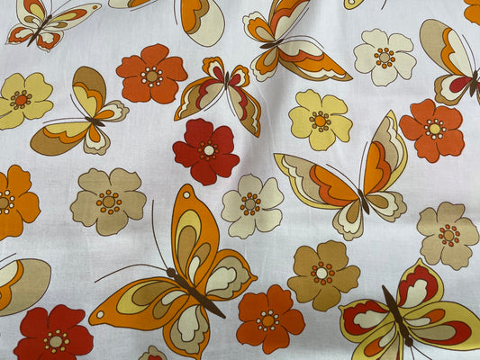 White Orange Rust Butterfly Cotton Spandex Poplin Woven "Warm Meadow"