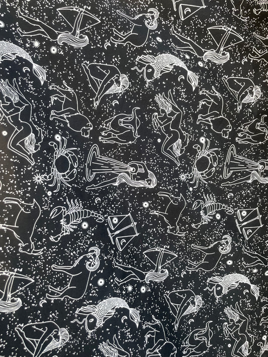 Black White Illustration Zodiac Astrology Cotton Sateen Woven “ I See My Sign”