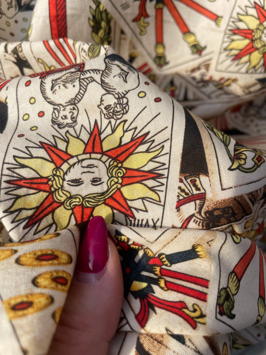 Cream Red Yellow Vintage Tarot Card Cotton Sateen Woven “In the Cards”