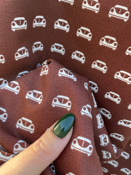 Brown Cream Retro Car Beetle Bug Cotton Canvas " Slug Bug!"