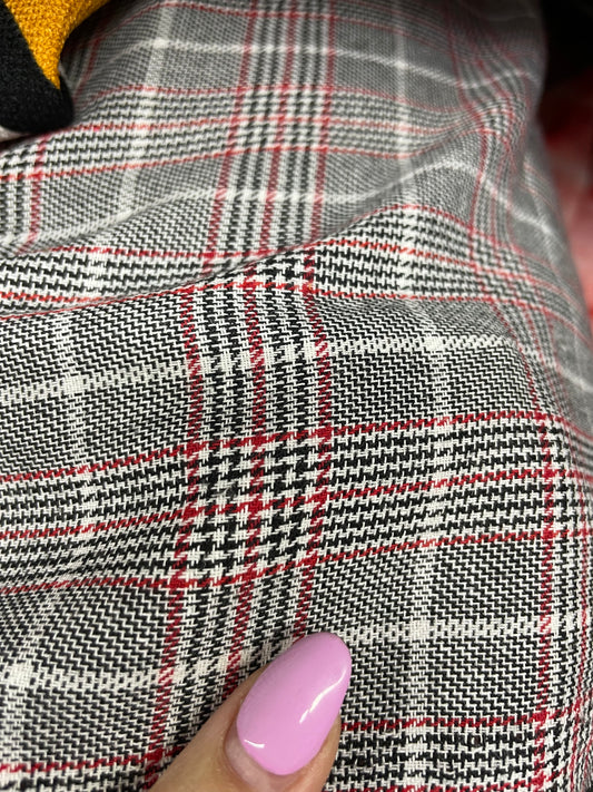 White Black Red Glen Plaid Cotton Polyester Spandex Woven "Avril Wants Her Pants Back"
