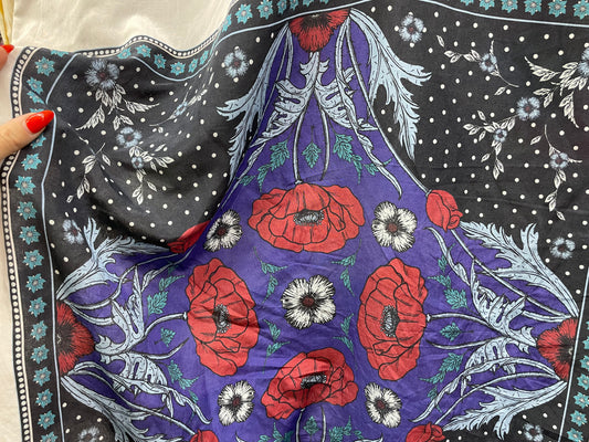 Silk Cotton Voile Poppy Scarf Print “Poppin’ Poppy’s”