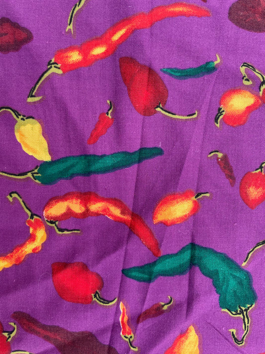 Purple Red Yellow Chili Pepper Southwest Vintage 90's Cotton Woven Poplin 'Tias Spicy Salsa'