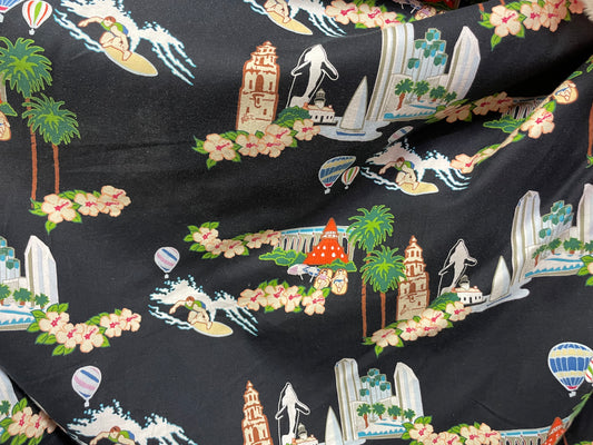 San Diego Vintage Tropical Summer Print Vintage Cotton Soft Poplin " Hello San Diego"
