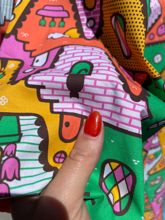 Pink Green Yellow Graphic Video Game Inspired Print Cotton Poplin "Level Up!"