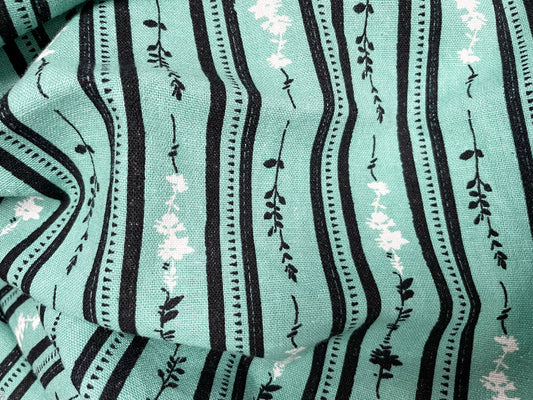 Green White Yellow Floral Daisy Print Lightweight Cotton Twill Woven "Folly Daisy"