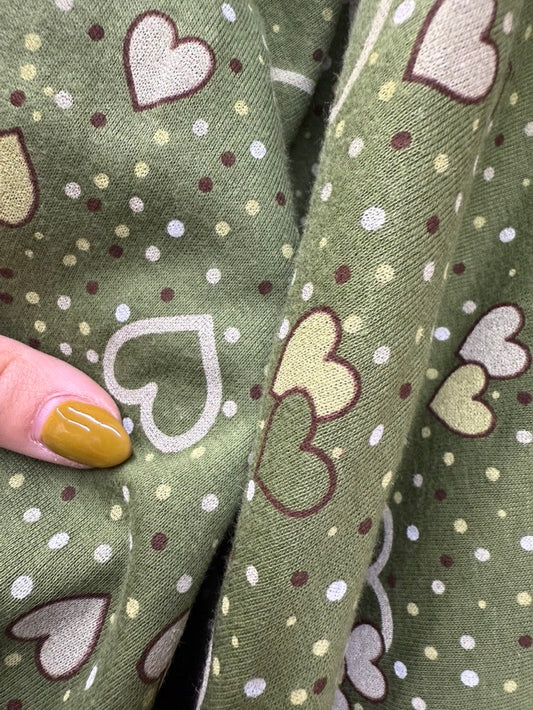 Green Yellow White Brown Hearts Dots Vintage Cotton Jersey Knit "Pop Heart Parade"