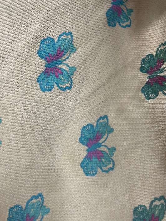 Blue Purple White Butterfly Vintage Cotton Thermal Knit "Darling Flutters"