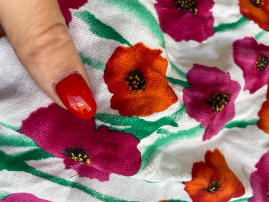 Red Purple Green Yellow Black Poppy Watercolor Floral Cotton Baby Rib Knit Jersey "Painted Poppies"