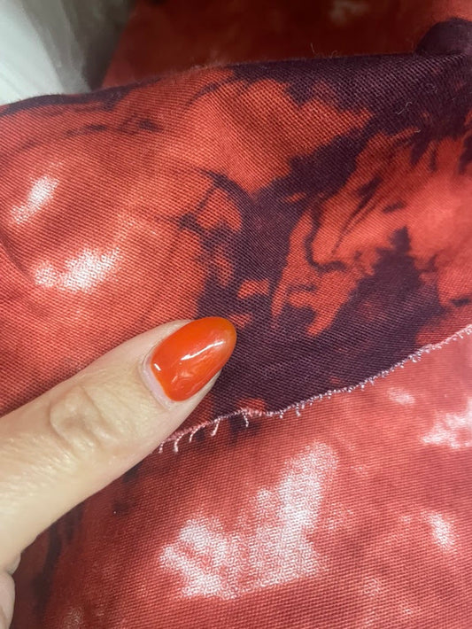 Red White Tie Dye Print Design Cotton Spandex Twill Woven "Blood Ink"