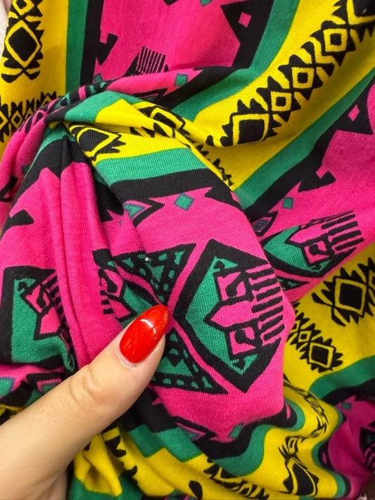 Yellow Pink Green Black Geometric Stripe Vintage Cotton Jersey Knit "Bold Lines"
