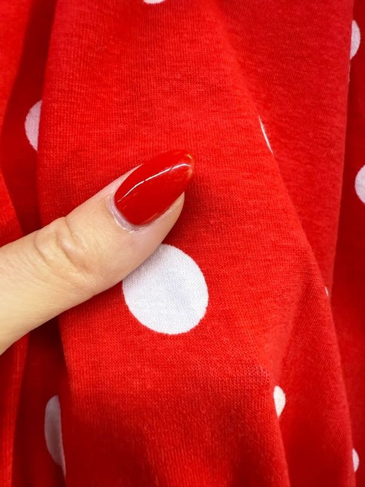 Red White Polka Dot Vintage Cotton Jersey Knit "Minnie's Dots"
