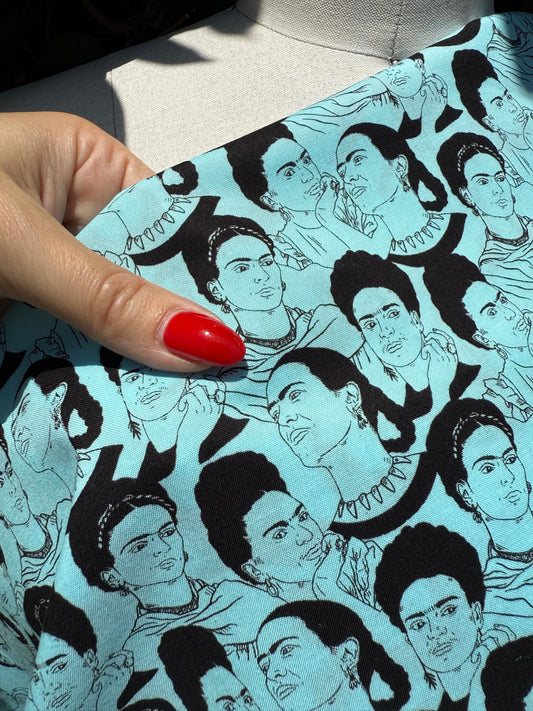 Blue Black Frida Kahlo Portrait Cotton Poplin “Frida and the Blues”