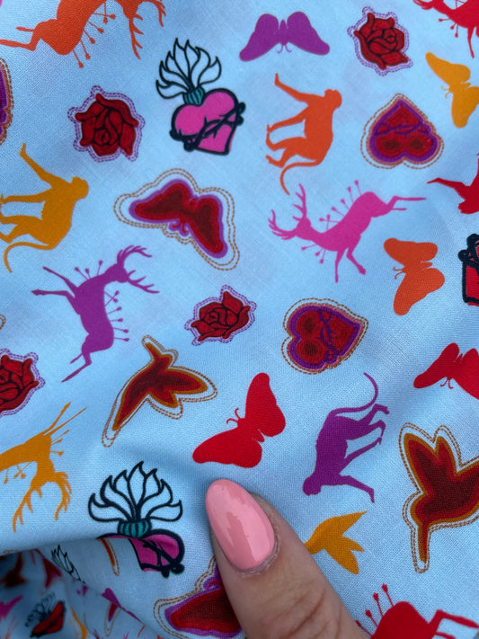 White Magenta Orange Butterfly Frida Deer Cotton Poplin Print "Frida's Favorite Things"