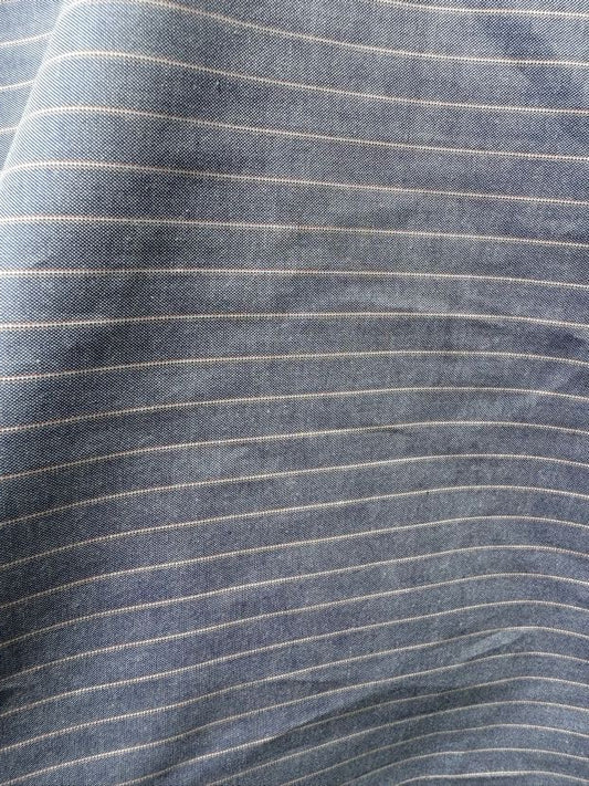 White Orange Blue Stripe Cotton Oxford Chambray Woven "Saddle Stitch"