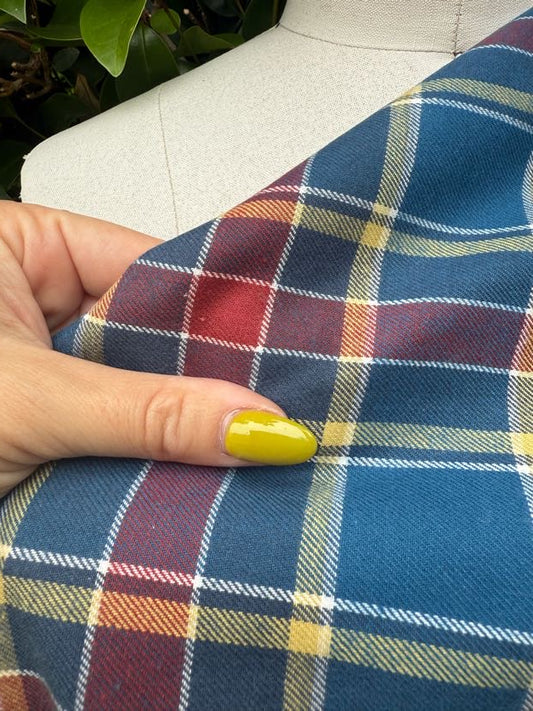 Blue Yellow Red White Plaid Cotton Flannel Woven "Campfire"