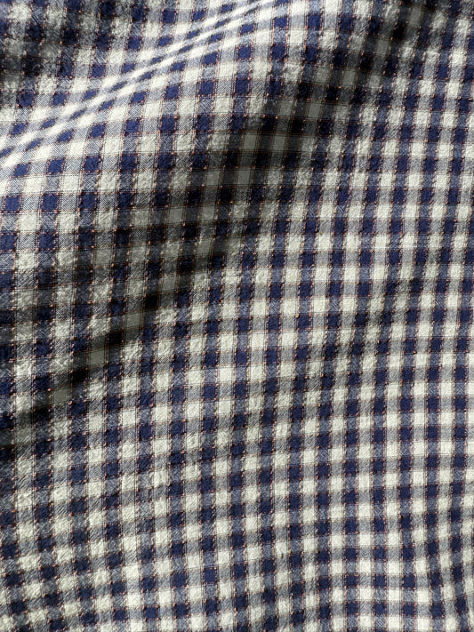 Blue White Orange Ditsy Gingham Sheer Cotton Voile "Potato Farm"