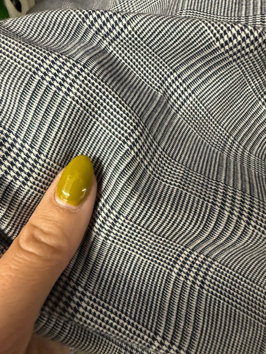 Navy White Glen Plaid Cotton Voile Woven "Business Casual"