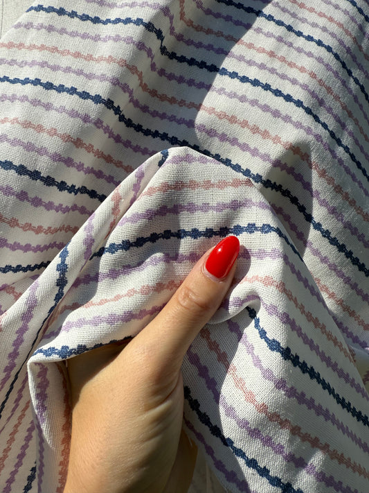 Pink Purple Blue Stripe Cotton Jacquard Woven "Polly's World"