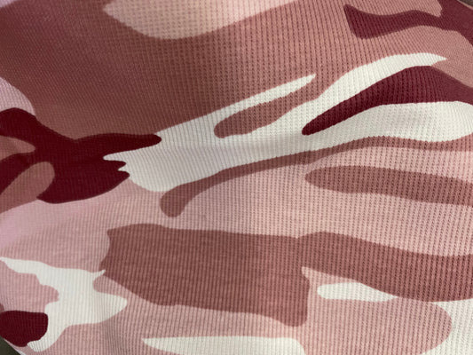 Pink Mauve White Camo Print Cotton Rib "Combat Cupid"