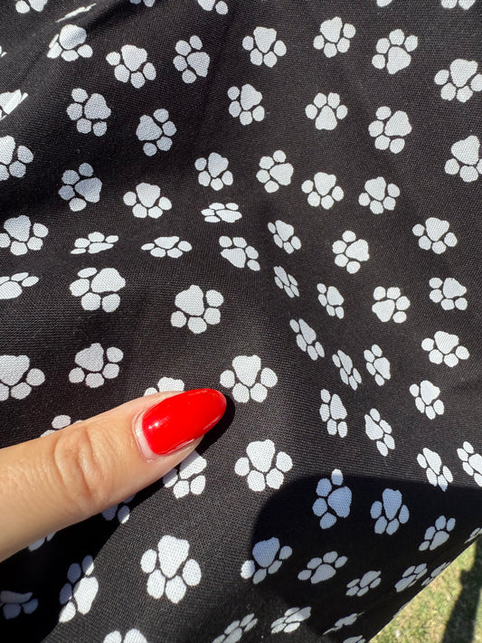 Black White Animal Paw Print Cotton Poplin Woven "Fur Baby FurEver"