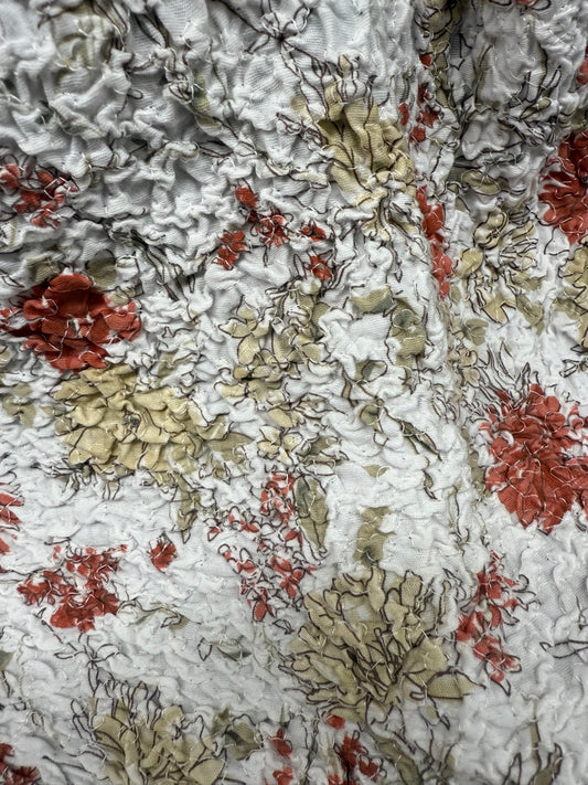 Floral Smocked Textured Yellow Beige Red Black Rust Vintage Cotton Jersey Knit "Crinkle & Bloom"