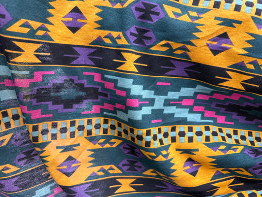 Yellow Purple Pink Blue Geometric Southwestern Vintage 90s Cotton Jersey "Stargaze Cactus"