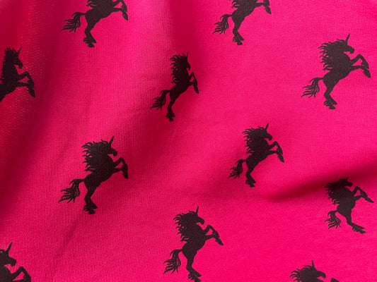 Hot Pink Black Unicorn Print Cotton Polyester Fleece "My Horn Can Pierce The Sky"