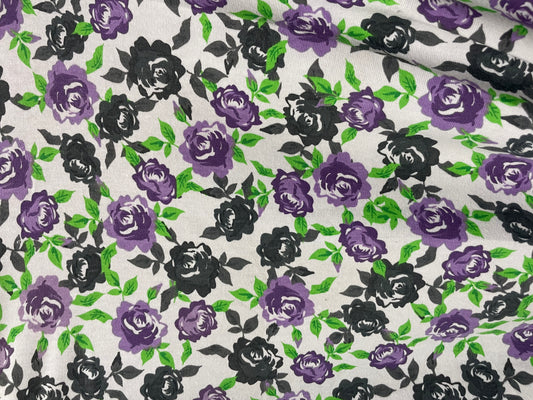 Purple White Green Ditsy Floral Cotton Vintage Jersey "Purple Garden"