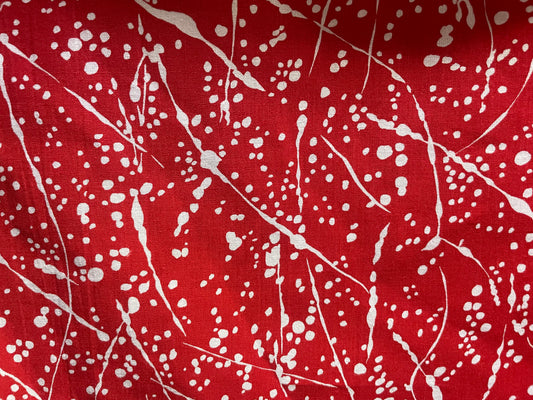 Red White Splatter Paint Vintage Cotton Poplin Woven "Spilled Pollock"
