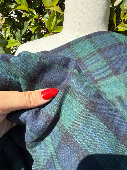 Green Blue Black Plaid Cotton Flannel "Campbell Hunter"
