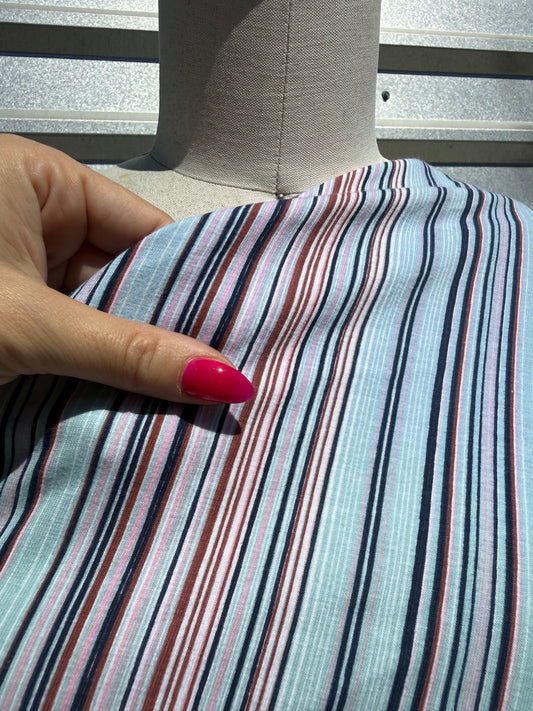 Mini Blue Navy Purple Vertical Stripe Cotton Spandex Jersey Knit “Zoe"