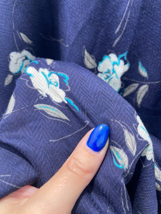 Navy Blue Floral Sheer Cotton Jacquard Voile "Midnight Flora"