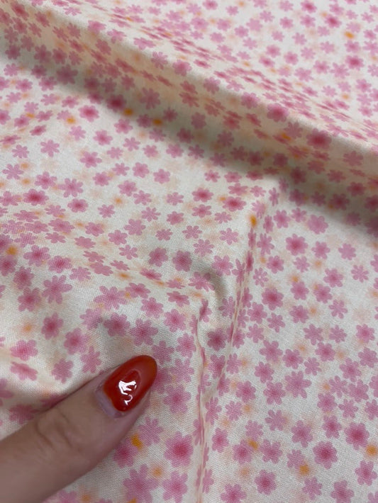Pink Yellow White Ditsy Daisy Floral Quilt Cotton Poplin Woven "Golden Spring"