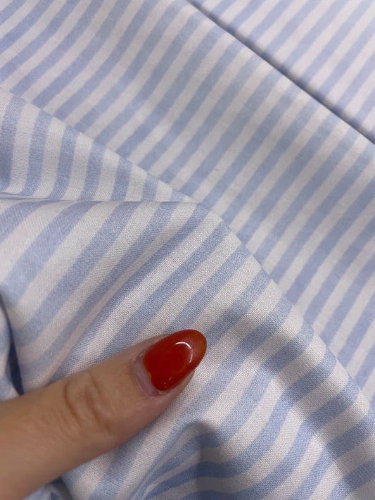 Light blue white Vertical stripe Quilt Cotton Poplin Woven "Ocean Breeze"