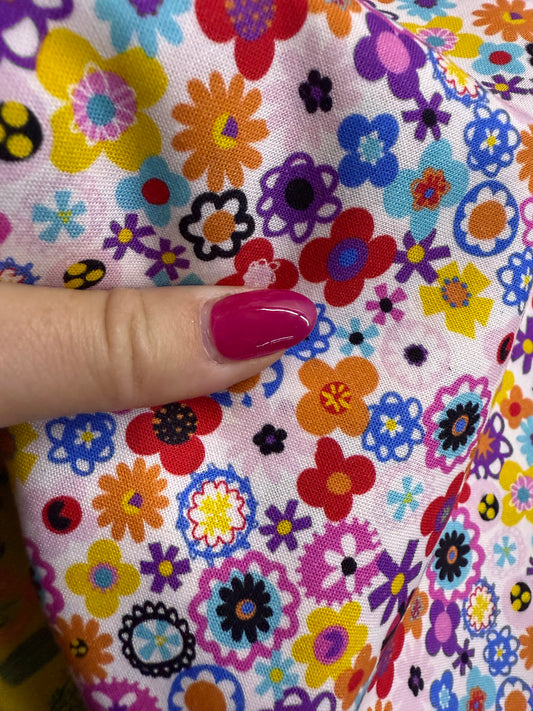 Pink Yellow Red Blue Green Floral Quilt Cotton Poplin Woven "Wildflower Mix"
