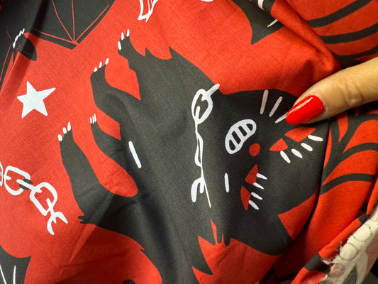 Red Black Spooky Grim Reaper Black Cat Knife Halloween Cotton Spandex Poplin Woven “Cute’n’Creepy”