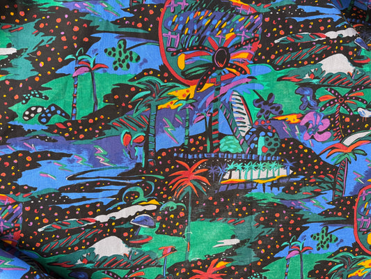 Black Multi Color Abstract Island Resort Cotton Poplin Woven “Art Island”