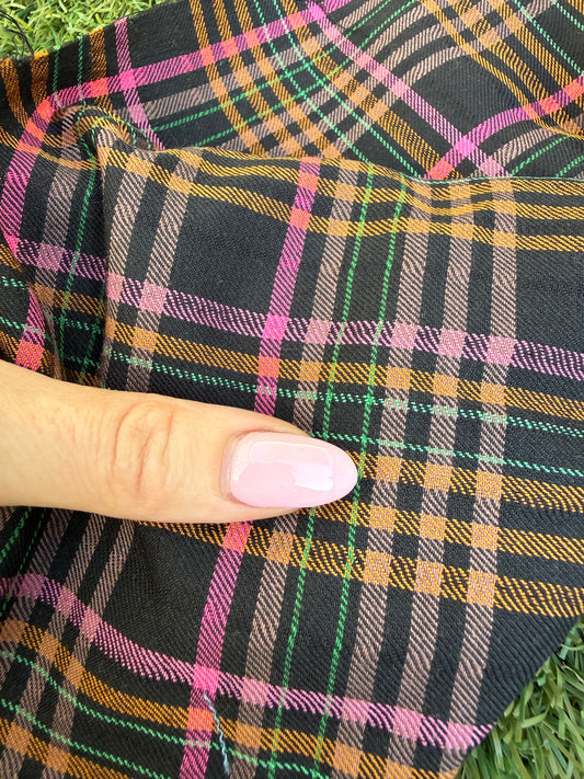 Black Pink Orange Plaid Cotton Woven "Mosh Skirt"