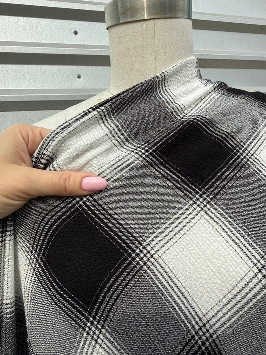 Black White Large Plaid Polyester Crepe Woven "Salt and Pepper"