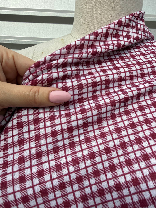 Burgundy Red White Plaid Print Cotton Spandex Jersey Knit "Pick a Berry"