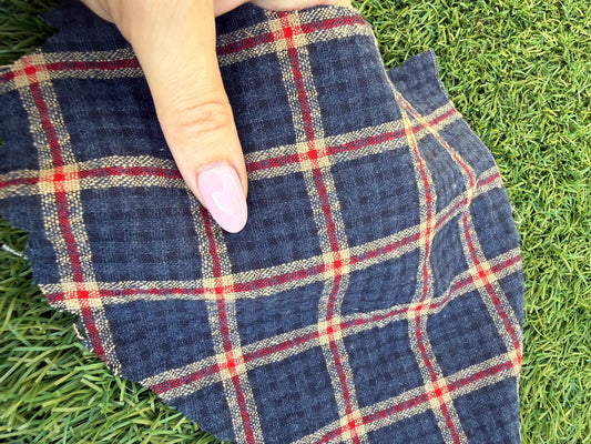 Navy Blue Gold Red Plaid Cotton Woven "Ralphie"