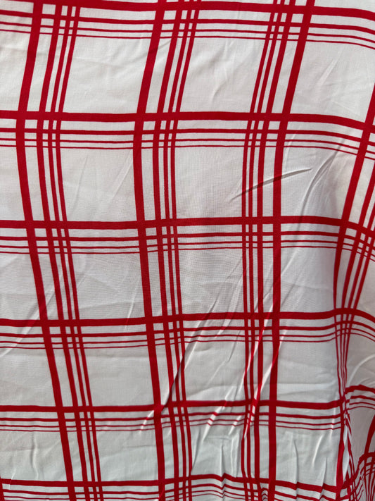 Red White Plaid Rayon Challis Woven ‘Modern Picnic’