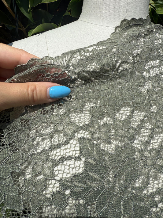 Gray Floral Mesh Overlay Polyester Spandex Stretch Lace "Pretty Gargoyle"